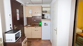 HabitacionesReserva una de las 54 habitaciones con cocina, frigorífico y placa de cocina, y disfruta de una estancia inolvidable. Las camas cuentan con colchones viscoelásticos y ropa de cama de alta calidad para descansar plácidamente. La conexión wifi gratis te permitirá estar al tanto de todo. Para tus momentos de ocio, tendrás una televisión de pantalla plana de 36 cm con canales digitales. Entre las comodidades, se incluyen escritorio y microondas, además de un servicio de limpieza disponible cada semana.