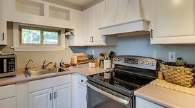 QuartosSinta-se em casa nesta casa de campo com ar condicionado, cozinha, um forno e uma placa de cozinha. As comodidades incluem um micro-ondas e uma máquina de lavar roupa.