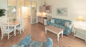 部屋全 8 室ある冷房完備の客室には簡易キッチンが備わっており、ゆったりおくつろぎいただけます。WiFi (無料)をお使いいただけるほか、ケーブルの番組をご覧いただけます。冷蔵庫やコーヒー / ティーメーカーをご利用いただけます。